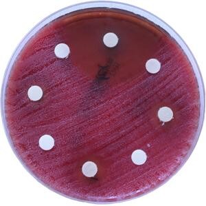 Die Plättchen auf dem Blut-Agar enthalten verschiedene ätherische Öle. Hat sich um das Plättchen ein Hof gebildet, in dem der ausgestrichene Erreger nicht wachsen kann, wirkt das Öl gegen den Erreger.