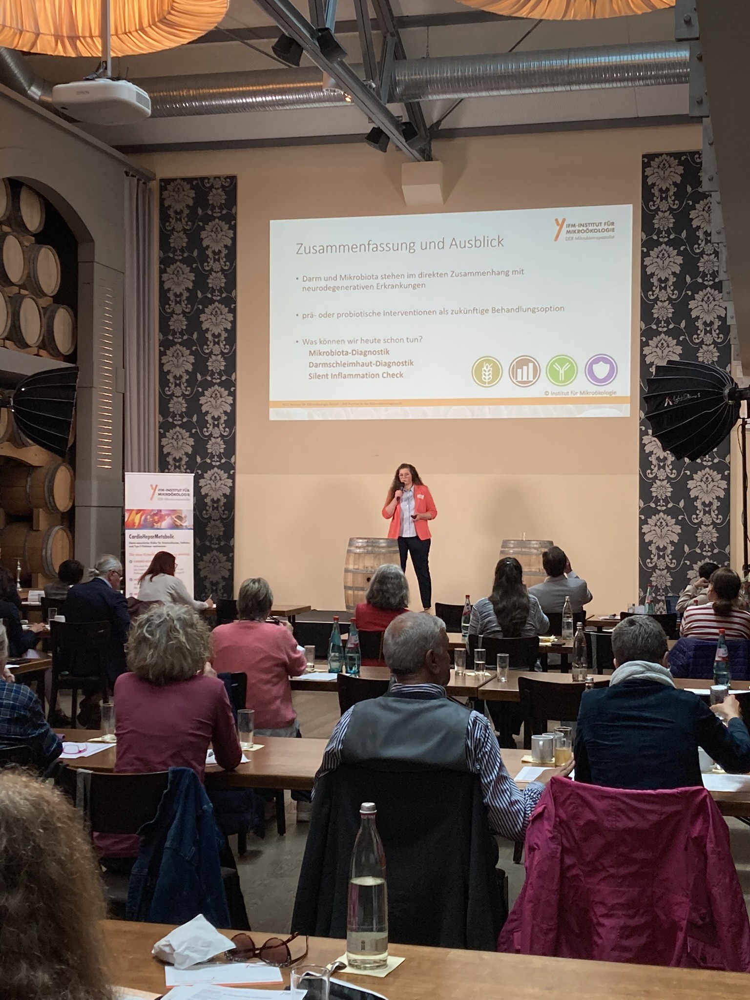 „Die Ursachen für die Alzheimer-Demenz sind trotz intensiver Forschung nach wie vor nicht vollständig aufgeklärt“, betonte Dr. Malena dos Santos Guilherme auf der diesjährigen Fachtagung des Instituts für Mikroökologie in Frankfurt. Dos Santos Guilherme ist seit diesem Jahr am Institut für Mikroökologie tätig. Im Rahmen ihrer Doktorarbeit an der Klinik für Psychiatrie und Psychotherapie der Universitätsmedizin Mainz erforschte sie, welche Rolle die Mikrobiota-Darm-Hirn-Achse bei der Pathogenese der Alzheimer-Demenz spielt. Vorangegangene Studien, an denen auch das Institut für Mikroökologie beteiligt war, hatten bereits die Bedeutung der Mikrobiota-Darm-Hirn-Achse für die Pathogenese von Morbus Parkinson gezeigt.